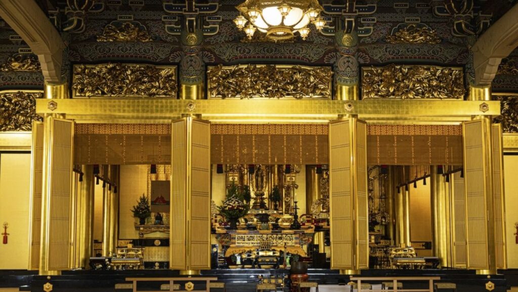 Established in the early 17th century and rebuilt in the 1930s after a devastating fire, Tsukiji Hongwanji’s current structure is unlike any other in Japan. Its design, influenced by ancient Indian rock-cut architecture, features a grand facade adorned with intricate carvings that depict traditional Buddhist imagery. The interior is equally impressive, with a vast main hall that houses a majestic altar, exquisite gold and wooden carvings, and towering columns that evoke a sense of awe and reverence.